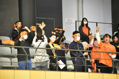 ここで、応援席の様子です。頑張る仲間を全力で応援します(و •̀ ᴗ•́ )و