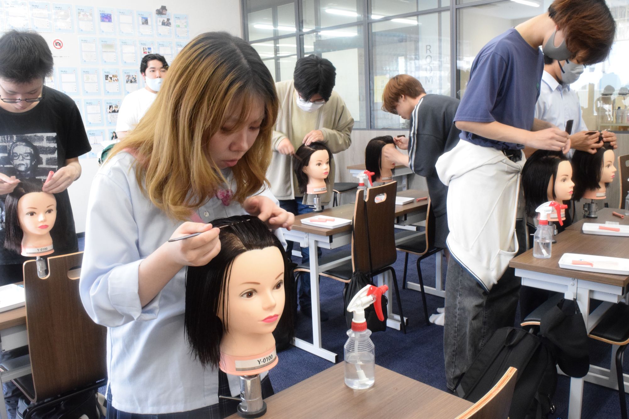 美容系では、実際にカツラにパーマをかけてみました。なんと、このかつら、人間の髪の毛を使用しているんですって!