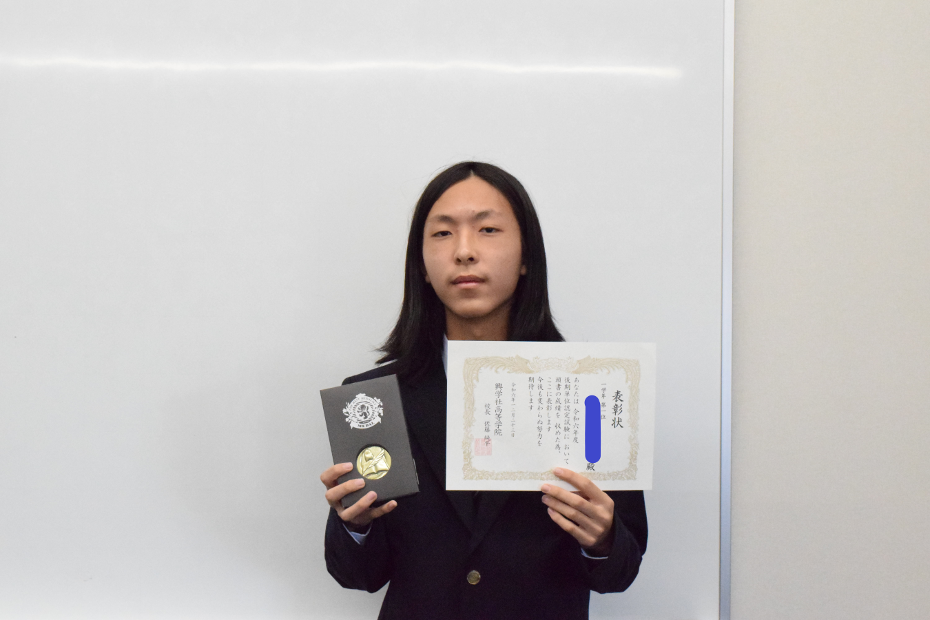 次に後期試験の上位5名の表彰とメダルの授与を行ないました。