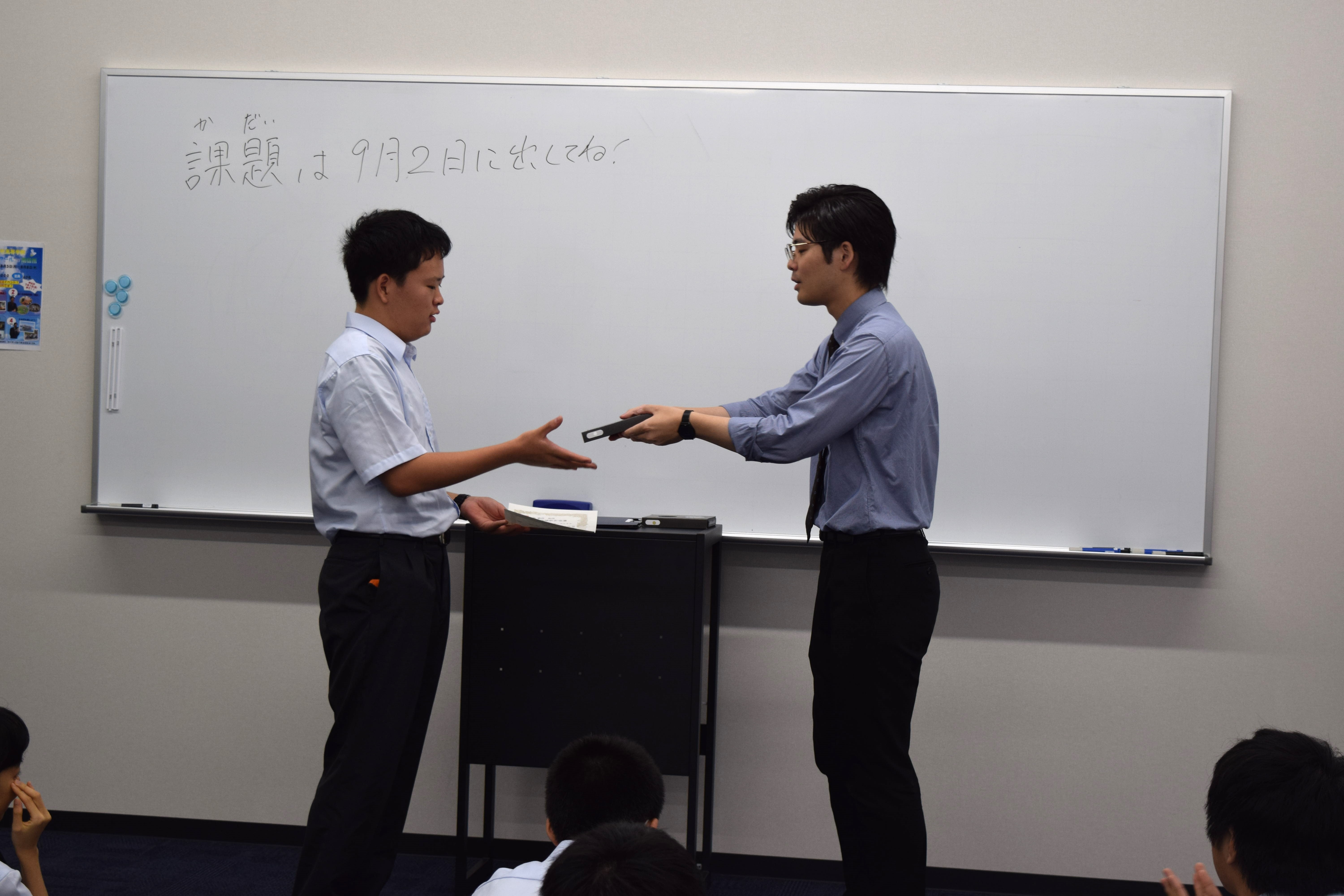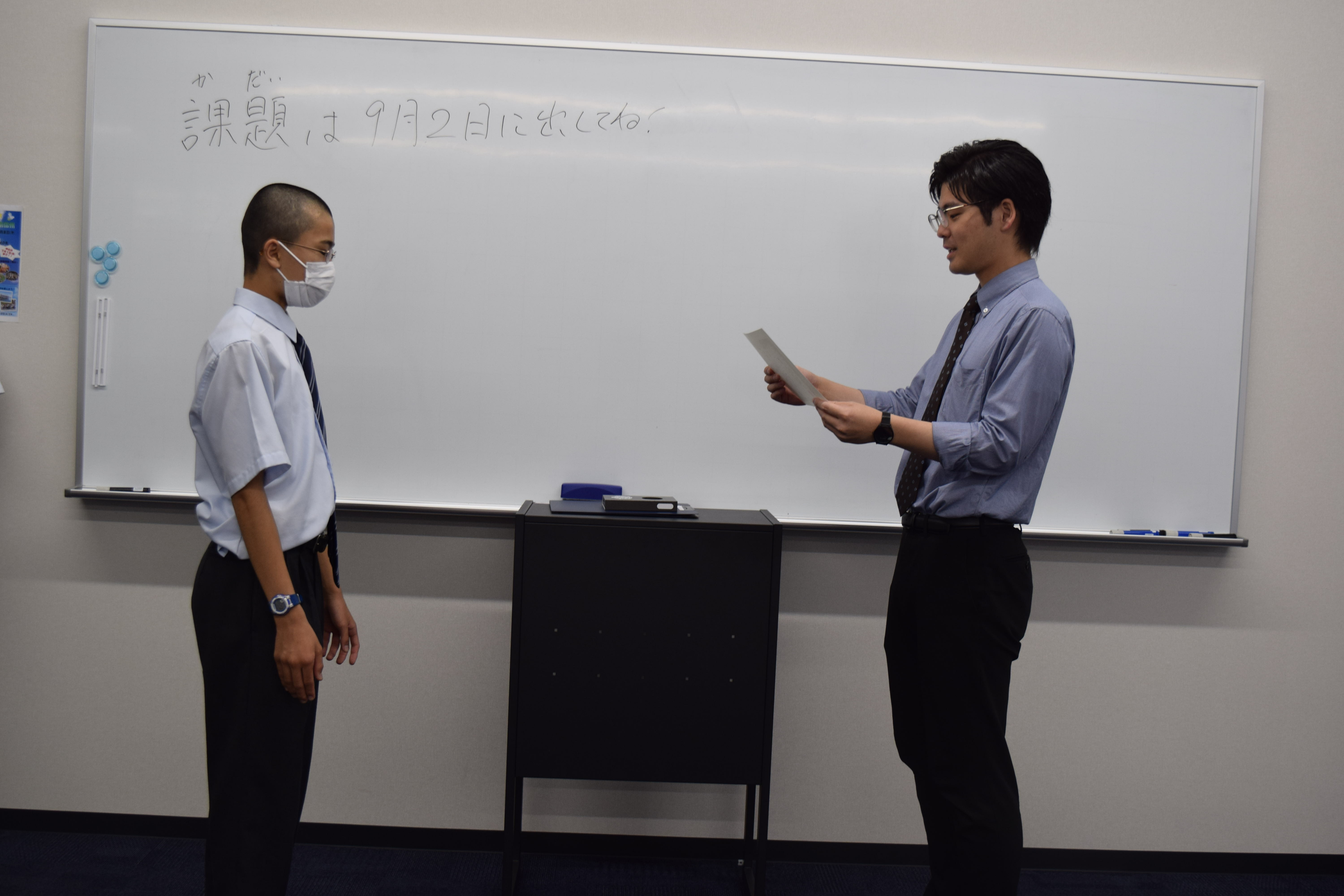 終業式では、試験結果と夏休みの宿題を配布します。