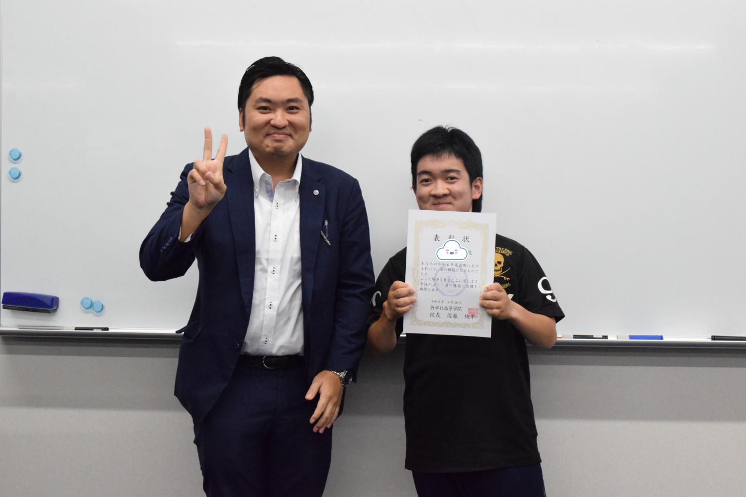 「善行賞」とは「他の模範となるような善い行いをした生徒」に送られます。